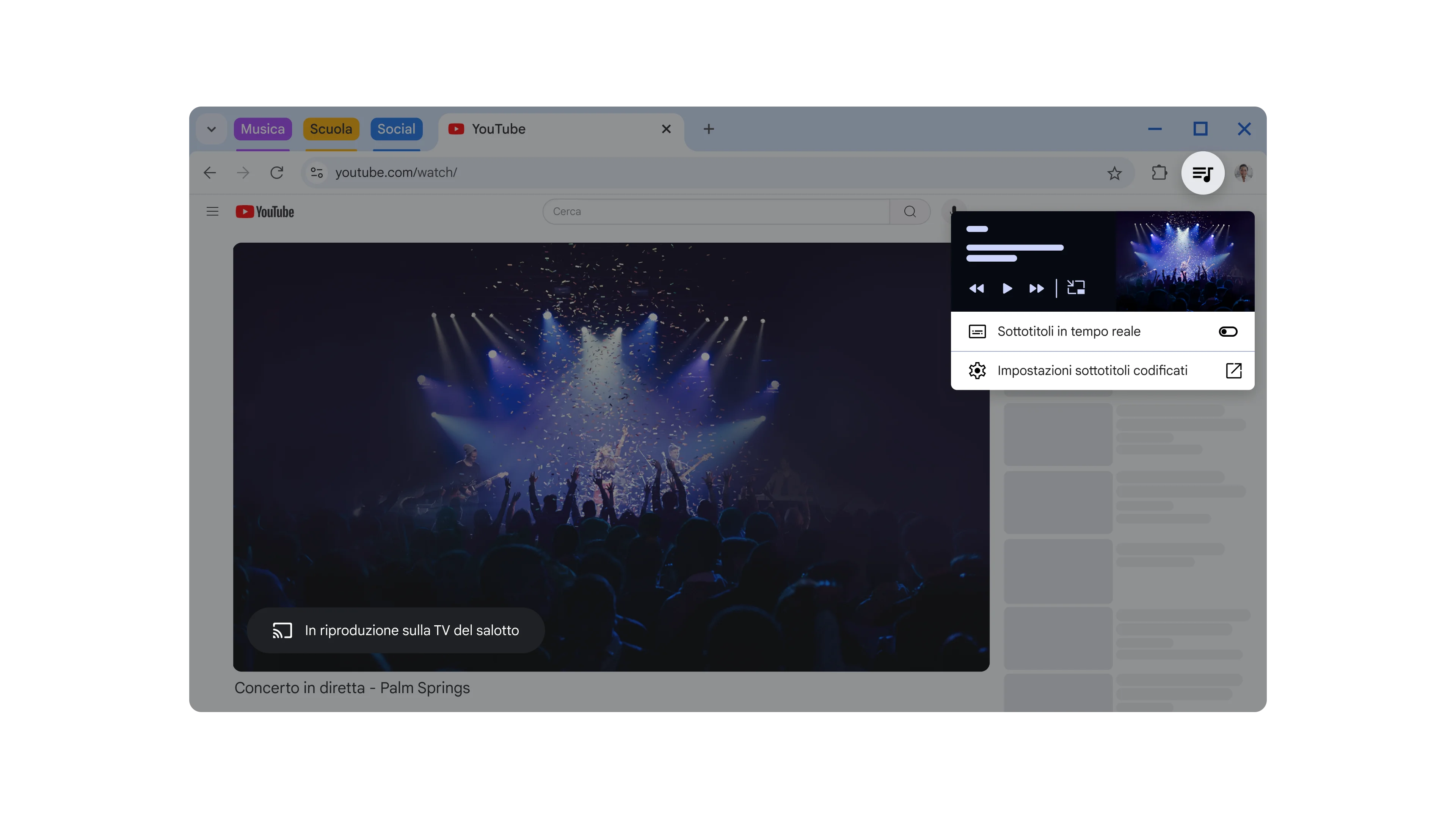 Il video di un concerto viene messo in modalità Picture in picture.